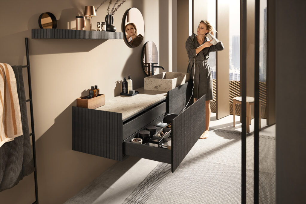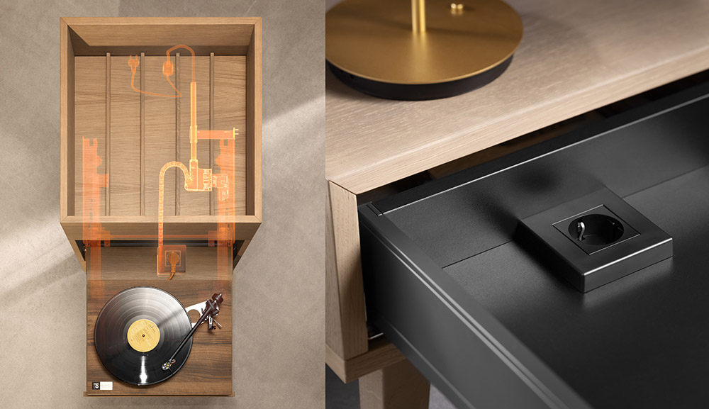 Zdaj lahko k temu pristopu dodate še pametno rešitev, ki združuje estetiko in tehnologijo – Blum AMPEROS AC, popolnoma skrit sistem za napajanje električnih naprav v pohištvu.