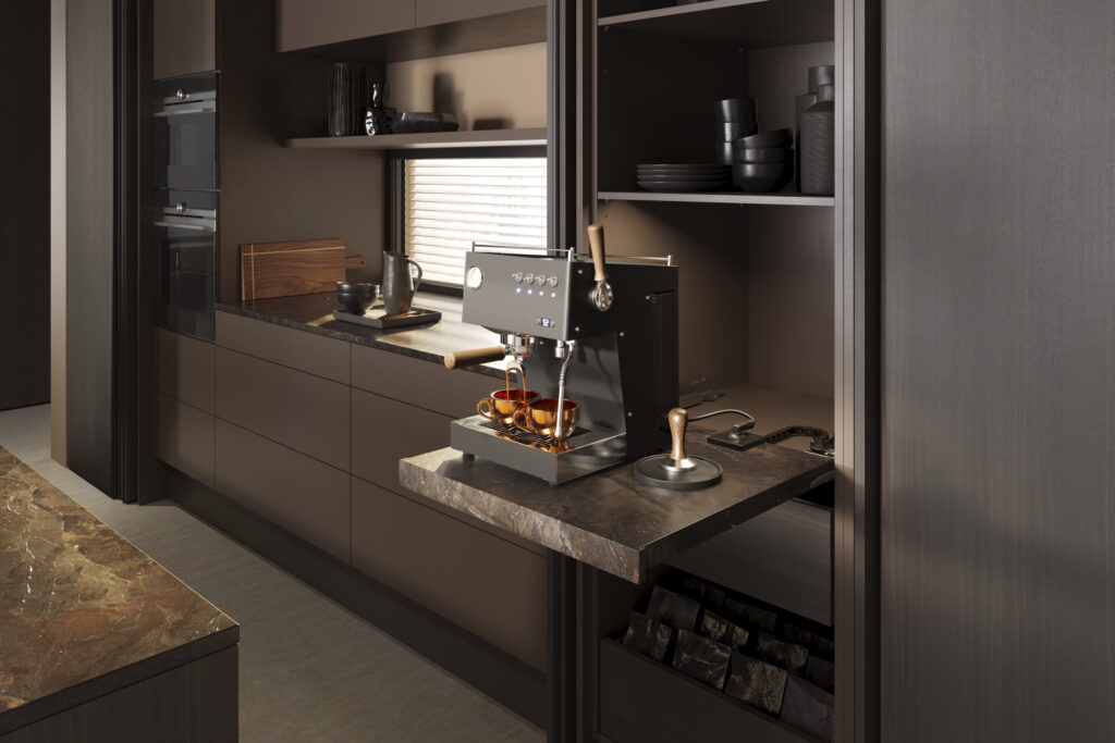 Zaradi integrirane vtičnice lahko večje ali težje naprave, kot so kavni aparati ali mešalniki, elegantno shranite v izvlečne police. Uporaba je udobna in varna – še posebej, če sistem kombinirate z Blumovim sistemom zaklopa police, ki omogoča preprosto rokovanje in stabilnost med uporabo.